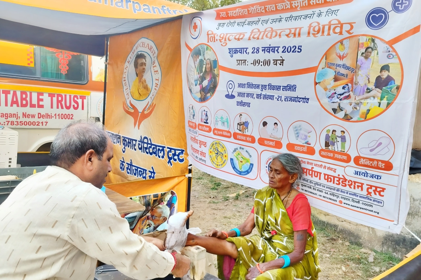 कुष्ठ रोगियों की सेवा में अपना संपूर्ण जीवन समर्पित करने वाले, अपनी संस्था के संस्थापक स्व. सदाशिव गोविंद कात्रे स्मृति चिकित्सा सेवा यात्रा के अंतर्गत इस सेवा यात्रा का 30वाँ एवं अंतिम निःशुल्क चिकित्सा शिविर 29 मई 2025 को राजनांदगांव स्थित आशा निकेतन कुष्ठ विकास समिति में सम्पन्न हुआ । शिविर का शुभारम्भ राजनांदगांव नगर निगम के महापौर श्री मधुसूदन यादव जी ने किया। इस अवसर पर गायत्री शिक्षण समिति की उपाध्यक्षा श्रीमती संध्या सिंघल जी, श्रीमान मंयक शर्मा जी ( जिला संयोजक पर्यावरण गतिविधि) एवं युवा समाजसेवी श्री निकुंज सिंघल जी उपस्थित रहे। इस अवसर पर समर्पण फाउंडेशन ट्रस्ट के संस्थापक श्री रवि प्रकाश जी ने इस सेवा यात्रा के सफल आयोजन के लिए राष्ट्रीय स्वयंसेवक संघ के विभिन्न संगठनों एवं कार्यकर्ताओं , राष्ट्रीय सेवा भारती एवं भारतीय कुष्ठ निवारक संघ का आभार व्यक्त किया तथा आगामी अगस्त माह में प्रस्तावित सेवा यात्रा में सहयोग का आह्वान भी किया। चिकित्सीय दल में प्रकल्प निदेशिका संतोष रानी, डॉ देव उत्कर्ष, राखी कुमारी, रोहित कुमार, किशन कुमार सम्मिलित रहे। यह सेवा अभियान 14 मई को कोरबा से प्रारंभ हुआ और राजनांदगांव में पूर्ण हुआ। इस सेवा यात्रा के अंतर्गत कुल 30 निःशुल्क चिकित्सा शिविर आयोजित किए गए तथा 7 हजार से अधिक कुष्ठ रोगी भाई-बहन एवं उनके परिवारजन लाभान्वित हुए । यह अभियान समर्पण फाउंडेशन ट्रस्ट द्वारा राष्ट्रीय सेवा भारती एवं भारतीय कुष्ठ निवारक संघ के सहयोग से संचालित किया गया। गौरतलब है कि समर्पण फाउंडेशन ट्रस्ट विगत 17 बर्षों से कुष्ठ रोगी भाई-बहनों की सेवा में समर्पित है तथा अपनी चल चिकित्सालय सेवा के माध्यम से 10 राज्यों की 245 कुष्ठ बस्तियों में नियमित अंतराल पर निःशुल्क चिकित्सा सेवाएं उपलब्ध करवा रहा है।