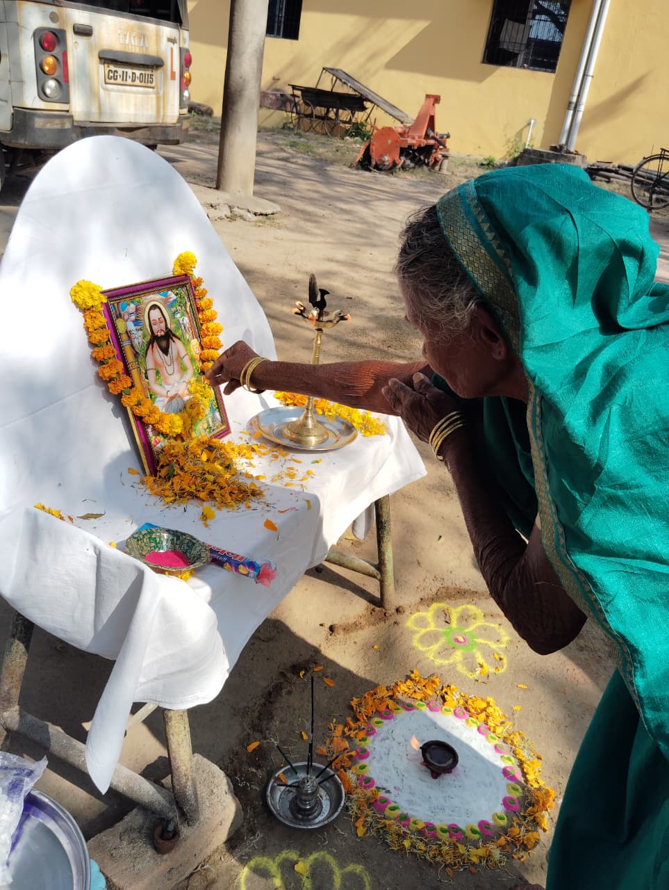 नमस्ते विश्वकर्माय, त्वमेव कर्तृता सदा। शिल्पं विधाय सर्वत्र, त्वं विश्वेशो नमो नमः।। कुष्ठ आश्रम में भगवान विश्वकर्मा जयंती के अवसर पर संस्था स्थित सभी वाहनों की विधिपूर्वक पूजा- अर्चना की गई साथ ही फल मिठाई समेत नारियल का भोग लगाया गया। इस अवसर पर संस्था के सभी वाहन चालक कार्यकर्ता बंधु उपस्थित थे।